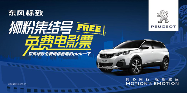 1、东风标致VIP客户转发该活动H5的客户,即可到东风标致各大经销商处,免费领取2张电影票。