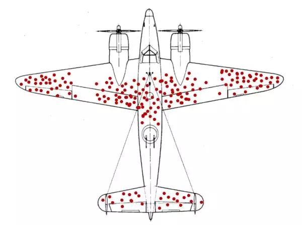 根据军方得到的数据,幸存返航的战机上弹孔分布并不均匀,军官们认为要把装甲集中在弹孔最密集的部位,可沃德却给出了截然相反的意见。沃德认为,尽管弹孔密集的部位看上去损伤严重但却并不致命,真正应该重视的不是这些活着回来的“幸存者”。这就是统计学中的“幸存者偏差”。