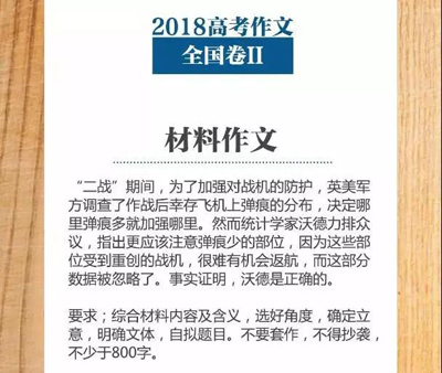 每年高考语文考试落幕,各地作文题目都会成为人们热议的焦点。而今年全国二卷的题目更是被网友们评为“2018最难高考作文”。这道有关“加强战机防护”的题目,不仅让统计学家沃德声名鹊起,更让“幸存者偏差”这个词火了起来。