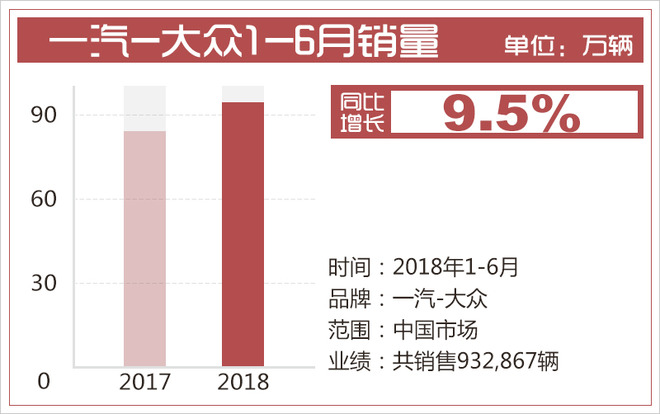 | 2 | 一汽-大众 | 932,867 | 851,621 | 9.5% |