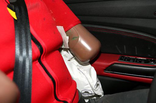 从猎豹CS9的试验现场看,其发动机舱整体溃缩变形,发动机盖隆起,不过两侧车门周边没有发生明显变形。试验后,4个车门均能顺利打开,正面安全气囊正中央与假人头部接触,假人坐姿没有明显异常情况。试验数据显示,其前排头部和大腿部位得到了满分。前排胸部是该试验的得分难点,去年C-NCAP共测试了40款车型,该部位平均得分率为75.6%;而猎豹CS9在该部位的得分率达到82.2%。从中可以看出,这是一款很注重细节的车型,车身结构设计合理;同时,安全气囊、安全带等约束系统与车身结构的匹配达到了很高的水平。