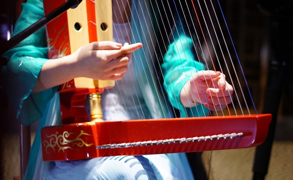 箜篌,这件丝绸之路上留下过独特东方文化印记的古乐器,从西域进入我国,盛行于唐宋,自明代之后失传,未留一物一谱,唯有在壁画和浮雕上略见一二。箜篌共有两排琴弦,可以左右手同时在一个音域里配合弹奏,音域十分宽广,音色柔美清澈。