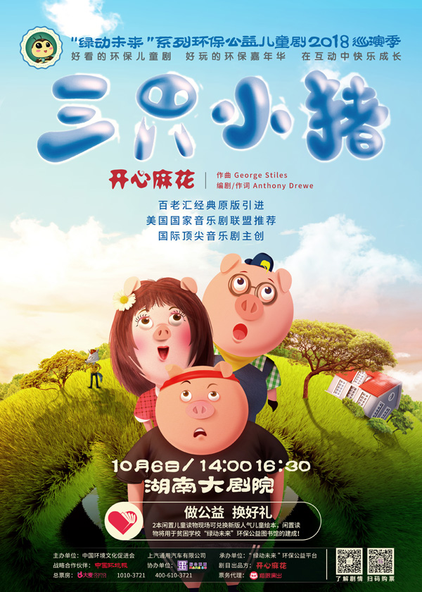 “绿动未来”系列环保公益儿童剧《三只小猪》即将来到长沙,10月6日,让我们相约湖南大剧院,和宝贝一起看剧学环保。