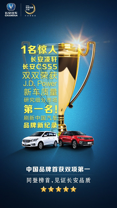 随后在9月27日,国际权威汽车评测机构J.D. Power亦在京发布《2018中国新车质量研究报告(IQS)》,公布中国汽车市场质量榜单,长安CS55和长安凌轩分获紧凑型SUV和紧凑型MPV细分市场第一,长安汽车成为史上首个获得该榜单双项第一的中国汽车品牌。