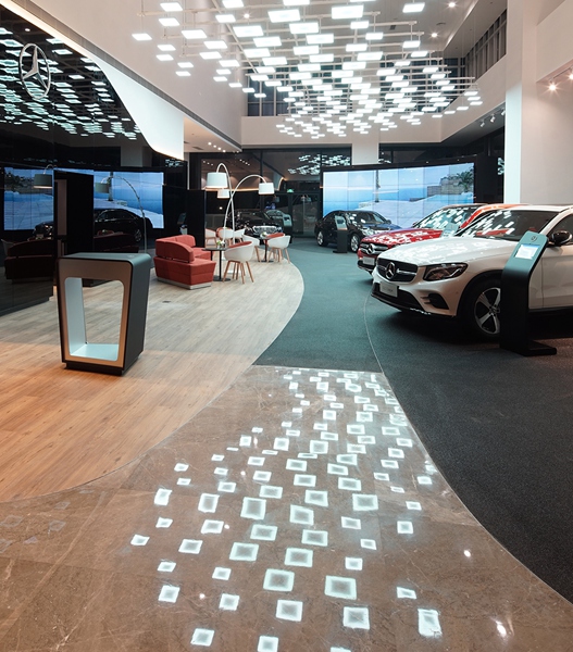 “暗房”,在密闭的空间内对奔驰的氛围灯、灯光等特点进行展示。未来,展厅还可充分利用多媒体设备,以配合例如车主沙龙、新车发布、公益活动等个性化场景的活动需求,为客户打造不同的氛围和多维度体验。