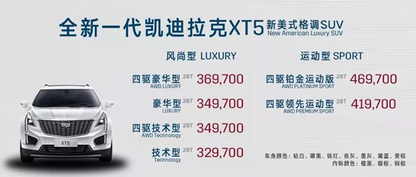 全新一代凯迪拉克XT5凭借独具一格的美学设计,在承袭ESCALA设计语言,闪电日行灯、直列式飞翼尾灯等凯迪拉克经典竖向造型的同时,由新锐设计团队操刀的风尚、运动双外观设计,满足新摩登家庭对于美学的多元化需求。风尚版金属风格配合现代图形设计的前格栅设计灵感源自ESCALA的启迪;而运动版的高光泽黑色格栅,则将蓄势待发的运动美学演绎到了极致。