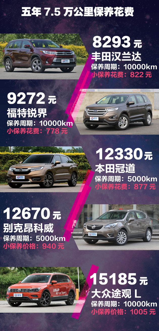 有些车你可能买得起,但不一定养得起。对“奶爸们”来说,买辆中型SUV或许是不得已而为之,如果能选一辆养车花费更少的车,多省下点奶粉钱那岂不是更好。本次我们就汇总了市面上几款热度最高的中型SUV,看看哪台车的养护费用能帮你省出更多奶粉钱。