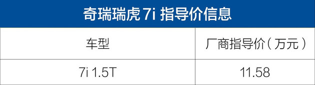 瑞虎7i将延续2016款瑞虎7的外观设计,内饰将基于瑞虎7FLY款打造,配备真皮方向盘、搪塑仪表台、主驾六向电动调节、后出风口、防夹全景天窗、9寸大屏,CarPlay、CarLife、语音交互(46种方言)、一键启动、无钥匙进入、电子驻车、自动驻车等。