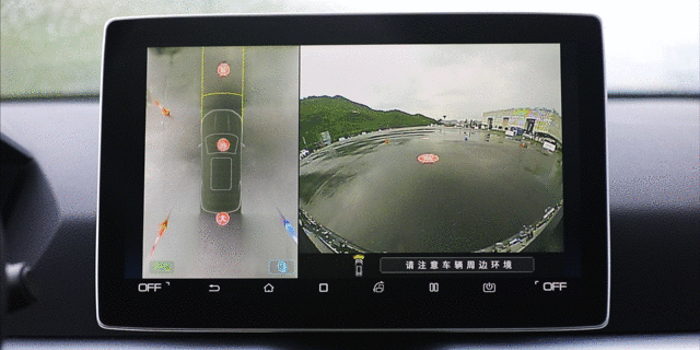在车内也可看到车底下的画面,这对于停车入库或者经过有较多障碍物的路面时非常实用。