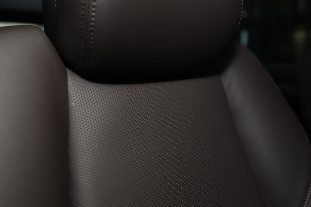 座椅方面,CX-8采用2+3+2的7座布局,座椅表面有Nappa真皮包裹,而且带有打孔设计,孔与孔之间的距离低至0.7mm以下,因此其触感比较光滑细腻,同时豪华感也十分强烈。内部填充材质的话,没有想象中那么柔软,偏向厚实的风格,乘坐起来支撑感十足。