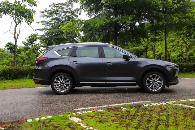 与CX-5对比的话,CX-8的修长感更为明显,虽然两台车的设计元素有90%相同,但是更长的车身,展现了不同的气质。如果说CX-5像一个精致小伙的话,CX-8更像是一个留着须根的文艺大叔,各领风骚。