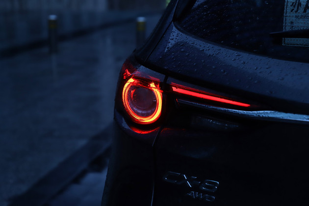 尾部的设计与CX-5不尽相同,CX-8显得更为倾斜,营造出一种旅行车的错觉,而且尾灯的造型也有着很大区别,比较接近于最近推出的几款概念车,以灯的轮廓直接成为灯壳造型,夜里点亮后,高级感和运动感都毫无保留地流露出来。
