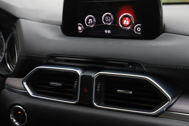 CX-8的内饰设计与CX-5同样有着90%以上的相似,采用传统的对称T字形设计,保留了大量的实体按键以方便操作,但是在细节上,它就像你那位考试坐旁边的“损友”,抄了你的答案以后还自己“美化”了一下。