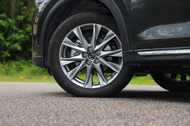 轮毂方面,CX-8采用的是十辐条设计,与整车的气质相得益彰。笔者作为一个键盘改装车神,对于原厂轮毂一直是持一个嗤之以鼻的态度,但不得不说,马自达的轮毂算是在原厂里表现不错的。首先它偏好大尺寸的轮毂,其次在造型方面并不显平庸,富有质感。