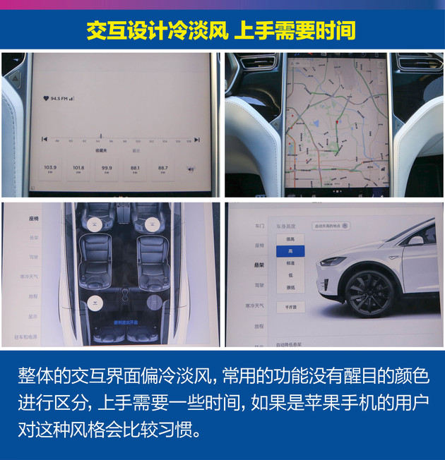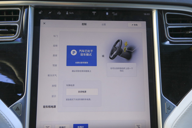 特斯拉的车载多媒体系统中各项菜单的名称缺少了一些亲切感,与常规的车载多媒体系统中各项菜单的命名方式略有不同,座椅加热与方向盘加热和前挡风除雾功能整合在寒冷天气的菜单中。对于新手来说这种做法比较直观,但如果是已经习惯了常规车型操作的可能会不太适应。