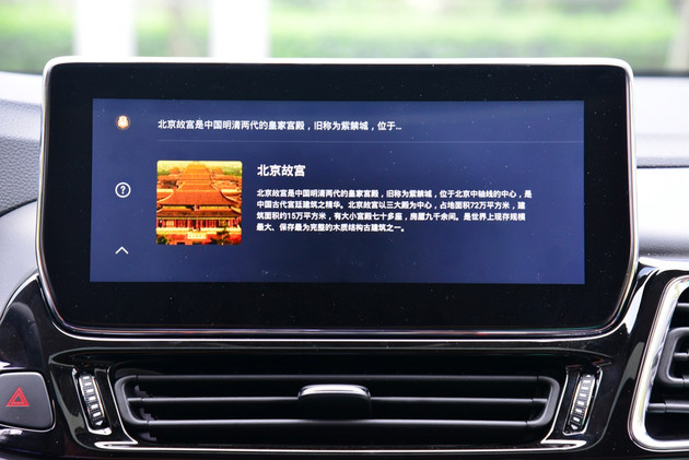 另外语音识别系统也是一个加分项,不仅可以实现打开空调和查询路线导航以外,还可以搜索关键词,并以百度百科的内容为准解释这一关键词,天气与股票也可实时呈现。