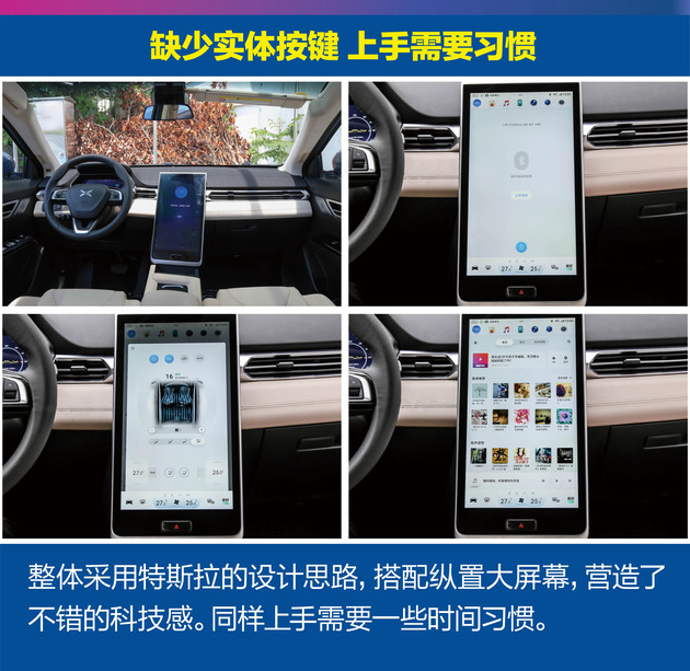 小鹏G3的车载多媒体系统依然采用与特斯拉相同的策略,采用15.6寸的屏幕,同样实体按键很少。上手需要时间适应,系统中可以根据驾驶者的需要下载不同软件,这一点与比亚迪车型相似,车机与智能手机在当下已经开始同质化。同样,其手机APP可查看车辆状态、电量、续航里程等信息,还可以远程控制车锁、空调、车窗等等。