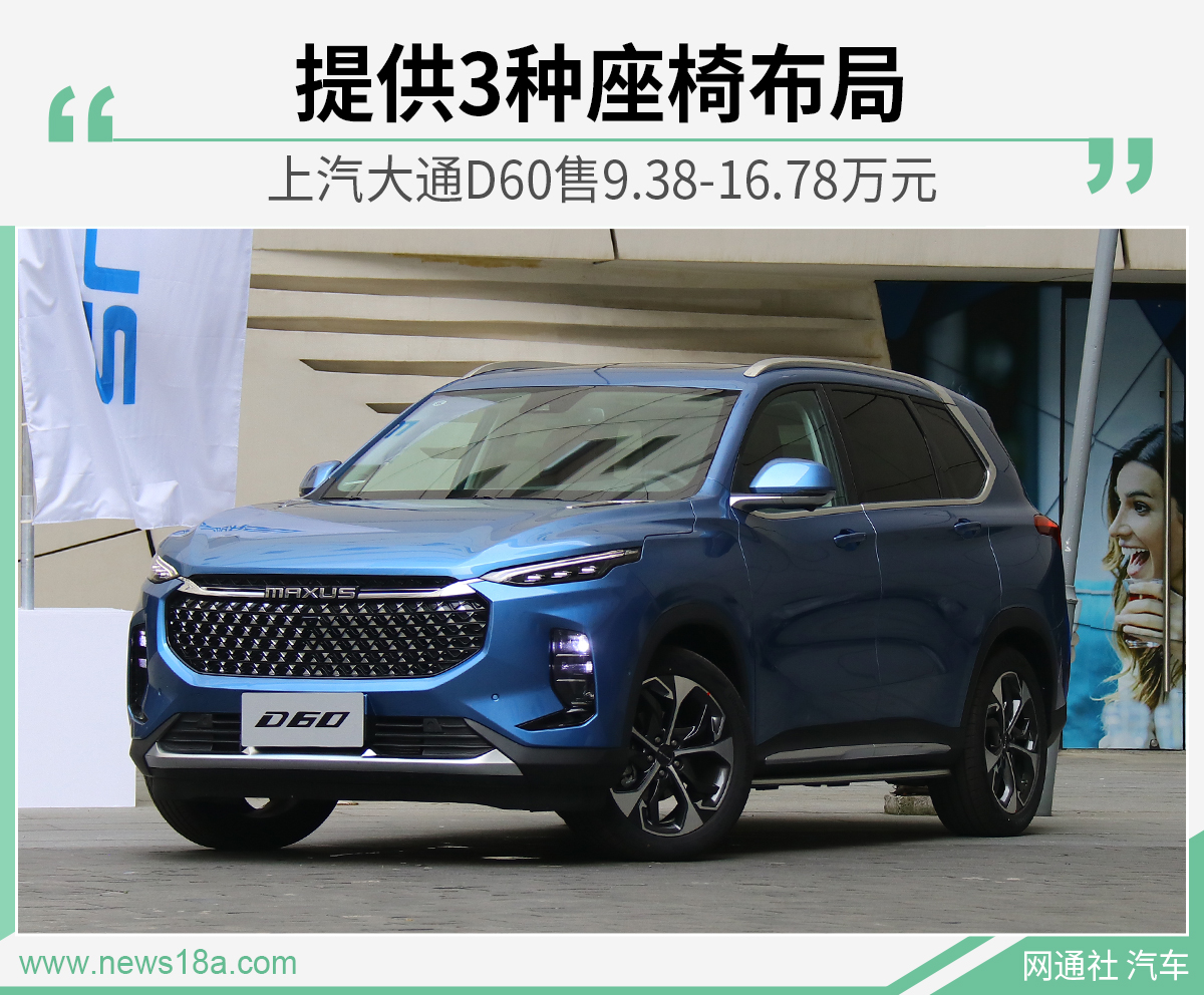上汽大通D60是基于TARANTULA概念车打造的一款全新中型SUV,于今年上海车展期间首发亮相。7月18日,网通社从上汽大通官方获悉,大通D60正式上市,采用定制模式销售,售价区间为9.38-16.78万元。作为上汽大通第二款SUV产品,D60提供3种座椅布局,并搭载1.3T、1.5T涡轮增压发动机。