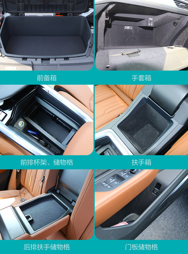 储物空间方面e-tron的表现相对正常,属于平均水准,并没有体现出它所谓的中大型SUV的优势。车内储物空间丰富,而且都相对顺手,空间也不小,后备厢具有很强的扩展性,后排座椅放倒后产生的纯平空间能极大提升后备厢的装载能力,整体电池组虽然放置于车辆底盘位置,但是对于车内空间的影响不算明显。