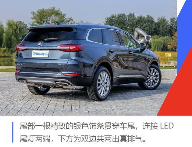新车定位中大型SUV,车身长宽高尺寸分别为4981/1953/1732(1736)mm,轴距为2863mm。车尾的设计方面,其D柱采用了熏黑式悬浮设计,搭配亮银色镀铬装饰条,豪华氛围扑面而来。另外,车尾采用了双边共两出的镀铬排气口,使“臀部”造型显得既精致又敦实有力。