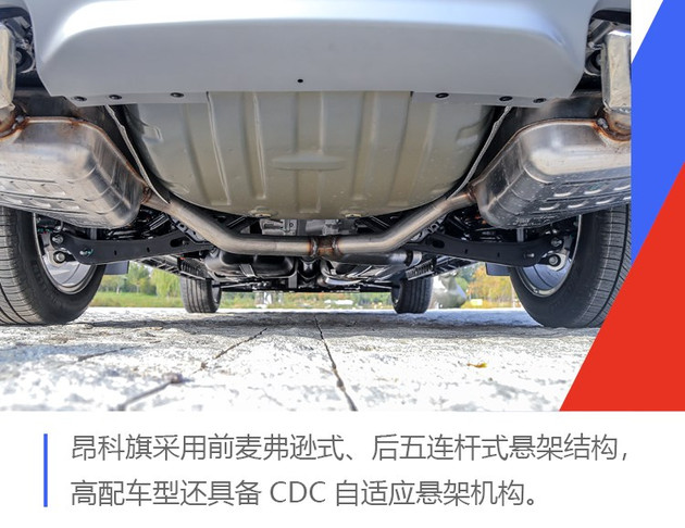 底盘方面,新车采用前麦弗逊后五连杆式结构,并配有高强度轻量化前后全框式副车架,能够带来更具品质感的驾乘体验。而Avenir车型还标配了CDC全时主动液力减振系统,可根据路况信息适时调节自身阻尼的软硬程度。此外,昂科旗还引入了全新智能四驱系统,可实现前驱/四驱间的智能调节。