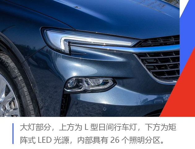 外观方面,新车前脸采用了别克家族最新的设计语言,飞翼式中网配以层次感很强的线条设计,整体的视觉感受相当精致。此外,其大灯组为分体式设计,上方“L型”灯条为日间行车灯,下方灯组为Matrix矩阵式LED远/近光灯,可实现26个独立照明分区,能够使灯光自动避开对向来车和行人,在夜晚用车时更加安全、有保障。