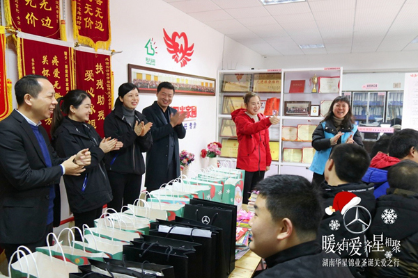 12月24日,在平安夜来临之际,湖南华星锦业奔驰管理层全员抵达春之晖特殊孩子救援中心,看望这一群特殊的孩子,愿湖南华星锦业的点滴爱心能如冬日的暖阳,温暖孩子们的内心。