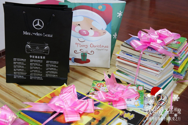 在平安夜还没到来之时,湖南华星锦业便早早地开始筹划这次关爱之行,提前了解孩子们喜欢什么、需要什么、爱吃什么。平安夜当天,在湖南华星锦业奔驰总经理郭欣的带领下,店里准备了图书、围巾、牛奶、平安果、零食等,载着满怀爱意的礼物,与孩子们共度了这个温馨的平安夜。