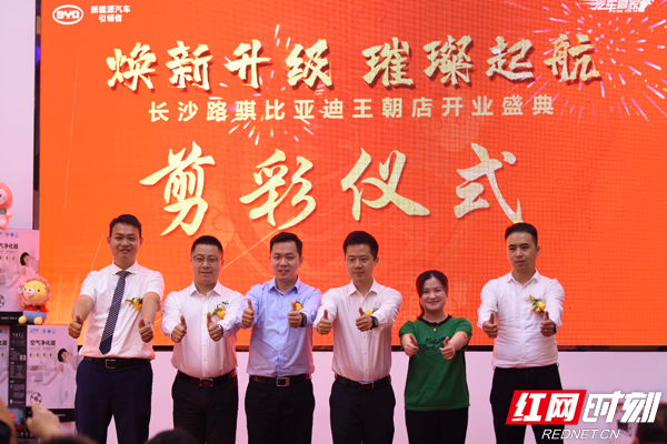 比亚迪汽车销售有限公司华中营销中心副总监薛祥、比亚迪新能源车直营事业部多渠管理部经理白勇、比亚迪汽车销售有限公司华中营销中心湖南大区经理徐凌晨等厂家、大区领导、同城经销商代表、湖南王朝新能源车友会代表和众多迪粉在长沙路骐比亚迪直营店汇聚一堂,共同见证长沙路骐比亚迪直营店的“王朝焕新 璀璨起航”!