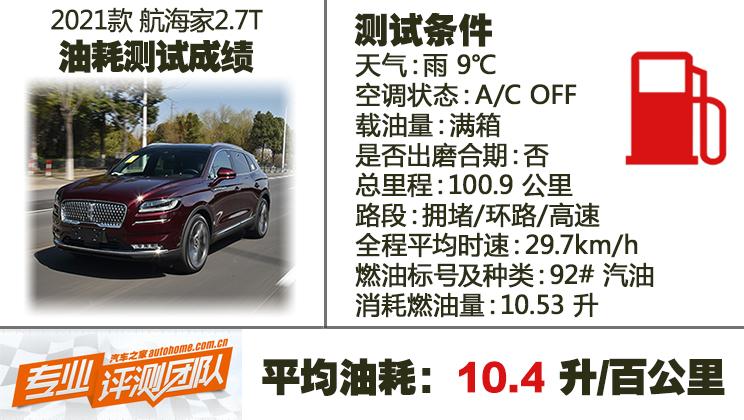 在油耗测试中,因为天气原因我们只开启了空调通风功能,并未开启A/C,同时也选择开启发动机自动启停功能,最终新款航海家2.7T四驱尊耀版的油耗成绩很让人满意