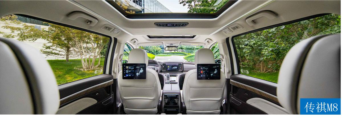 不仅座驾舒适奢享,传祺M8还具有出色的健康空气管理系统GHAS,让人彷佛置身于清凉舒适的森林氧吧。传祺M8配备三区独立控制自动恒温空调、AQS空气质量控制系统和等离子森林氧吧空气净化系统,乘客可自由调节适宜的温度,净化车内空气,每时每刻享受清晰、自然的空气,获得尊贵体验。