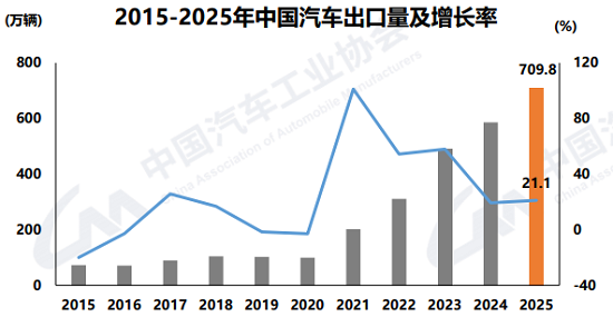 值得一提的是,2025年中国汽车出口保持高速增长态势,其中汽车出口达到709.8万辆,同比增长21.1%,成为中国汽车市场保持正增长的主要推动力之一。