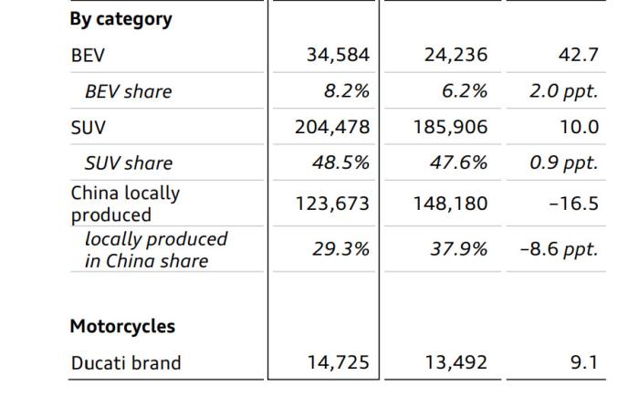 奥迪2023Q1财报截图。