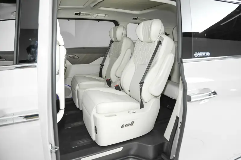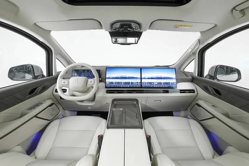 高山7座椅采用2+2+3的7座布局,第二排配备双独立座椅,支持电动调节、通风、加热功能,并可选装带按摩功能的零重力座椅。此外,新车还为后排配备了吸顶娱乐屏、冷暖冰箱、折叠小桌板等配置。