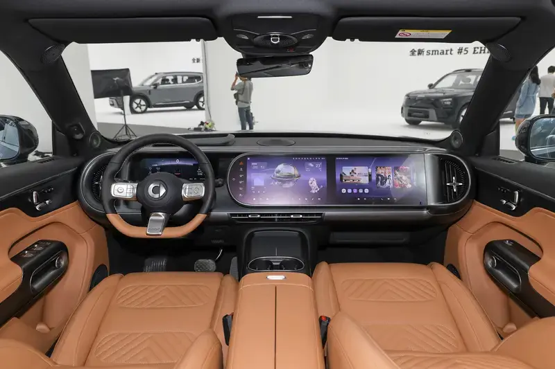 内饰方面,新车采用了3屏内饰设计13英寸OLED 2.5K的双联屏无比瞩目,像操场跑道一样的屏幕边框设计也是非常的“smart”。新车配备AMD V2000车机芯片,同时也是首款搭载豆包AI大模型的量产车。此外smart精灵#5还配备有10.3英寸全液晶仪表盘和25.6英寸AR-HUD,科技感满满。