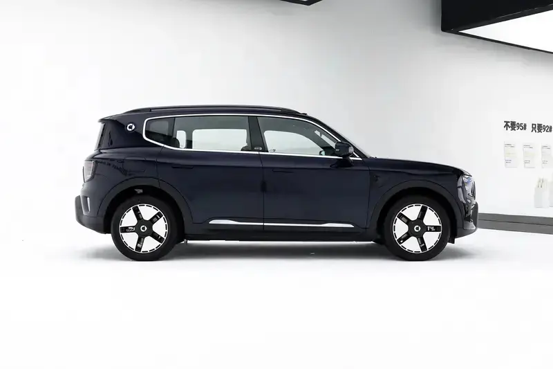 外观方面,smart精灵#5 EHD在向方盒子贴靠的同时,没有忘记品牌的圆形元素,方中带圆的Boxy设计令smart精灵#5极具个性和辨识度。封闭式设计的前脸融入了名为“时空胶囊”的贯穿式LED矩阵式大灯,前包围的设计也令新车带有些许硬派SUV的气质。