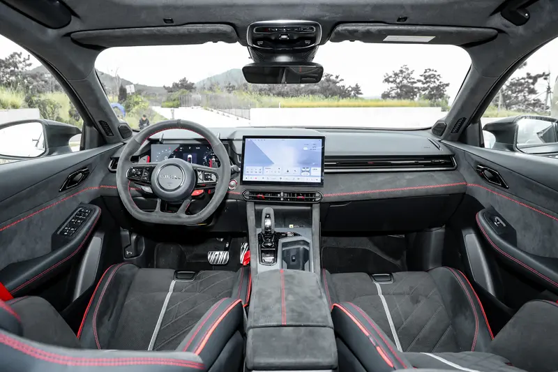 领克03+与领克03内饰的不同之处主要在于03+加入了更多麂皮包裹以及赛车风格的座椅,并将屏幕尺寸从15.4英寸调整为12.8英寸。