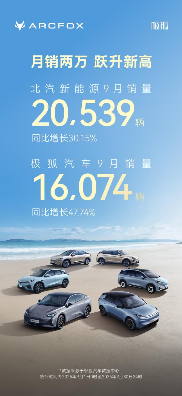 北汽新能源月销2万+辆,极狐汽车9月销量超1.6万辆,跨越规模拐点,跻身主流阵营。本月,新车型极狐T1、上市即交付,上市首月大定突破35000台,为品牌注入了新的市场增量;与此同时,核心车型“五系双子星”凭借800V超充与超长续航、健康座舱等越级配置,持续获得市场青睐。