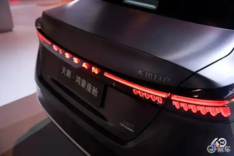 来到车尾,可以看到新车尾部设计延续前脸简洁风格,同样采用一体化造型方案,尾灯组中的NISSAN光标及两侧镶嵌的11枚宝石灯体,极具辨识度与精致美感,构建出更具智能化的视觉风格。